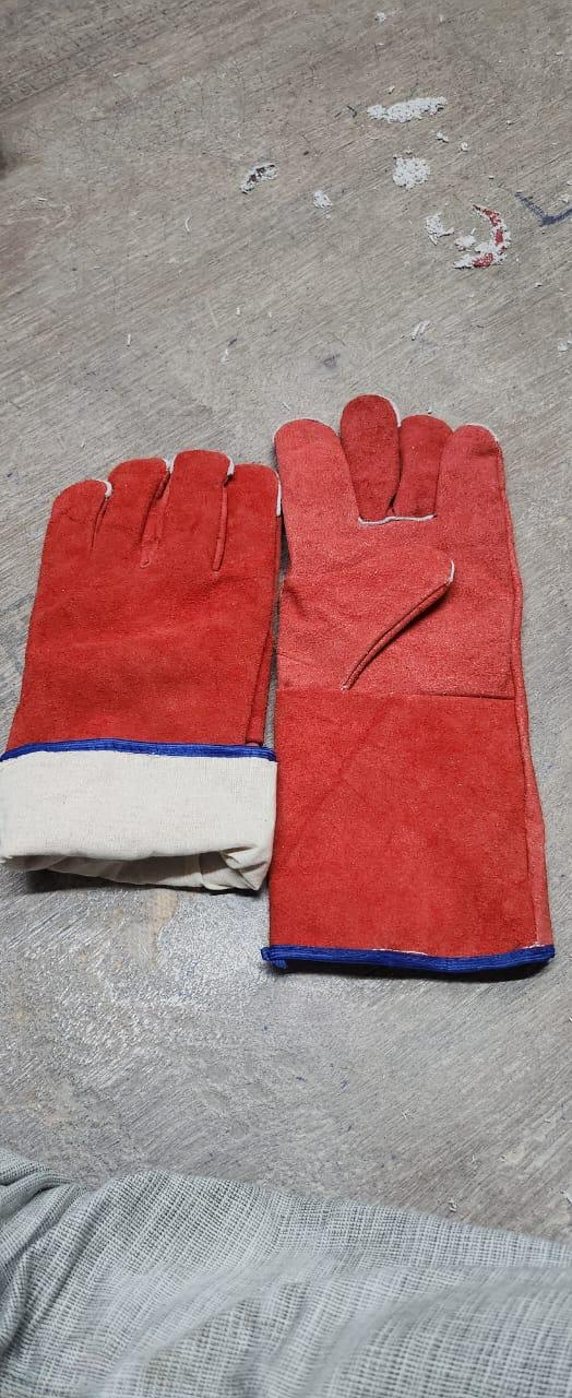 Red Winter Leather Hand Gloves