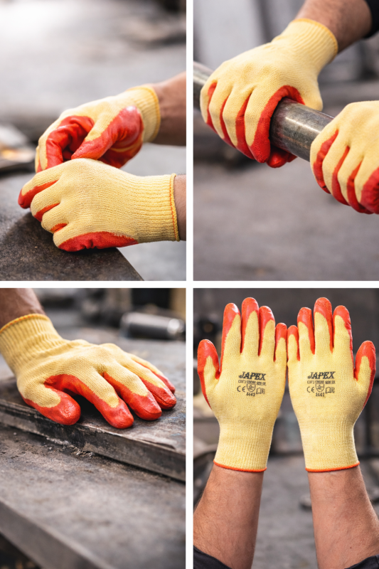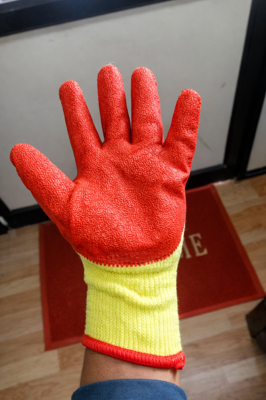 HAND GLOVES LATEX COATED ORANGE YELLOW 80-90 GM
